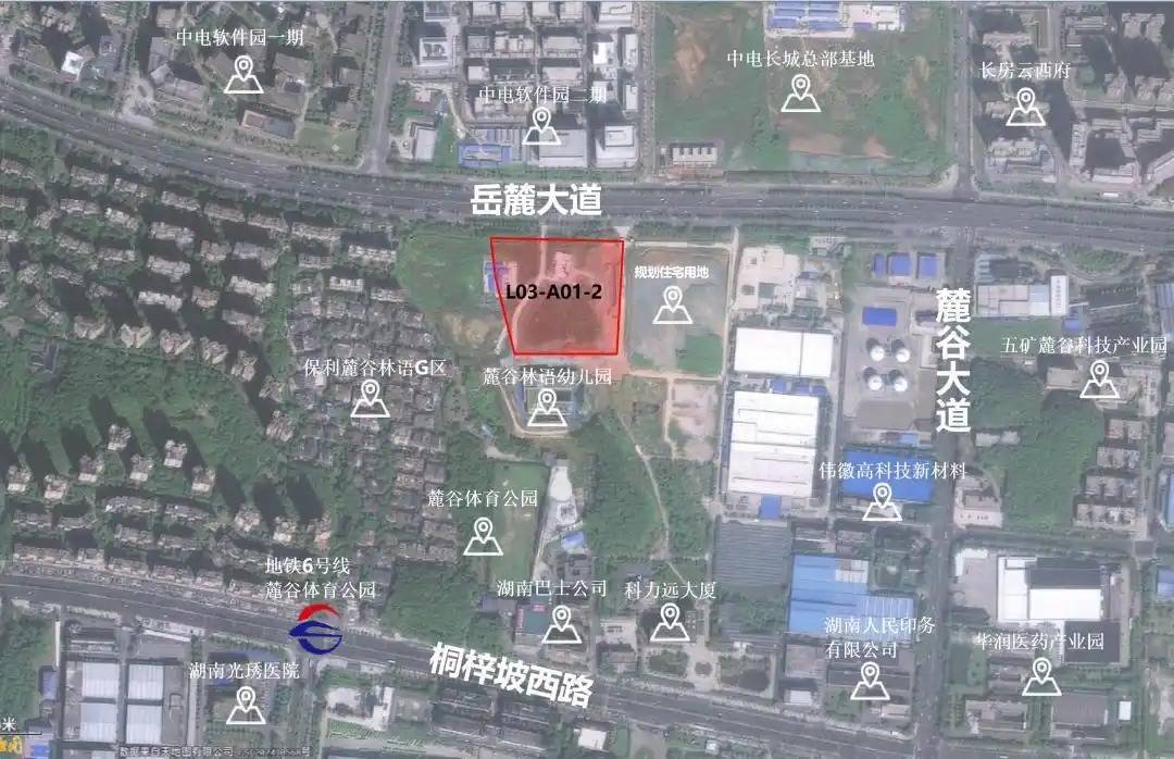 据悉,该地块坐落于湖南湘江新区麓谷片区核心区域,北临岳麓大道,西接麓云路(规划中),距离地铁6号线麓谷体育公园站约1公里,交通路网便捷通达。地块周边配套醇熟完善,麓谷体育公园环伺左右,明德麓谷学校、湖南光琇医院等优质资源集聚,兼具开发价值与居住价值,是优质“熟地”与宜居“宝地”。